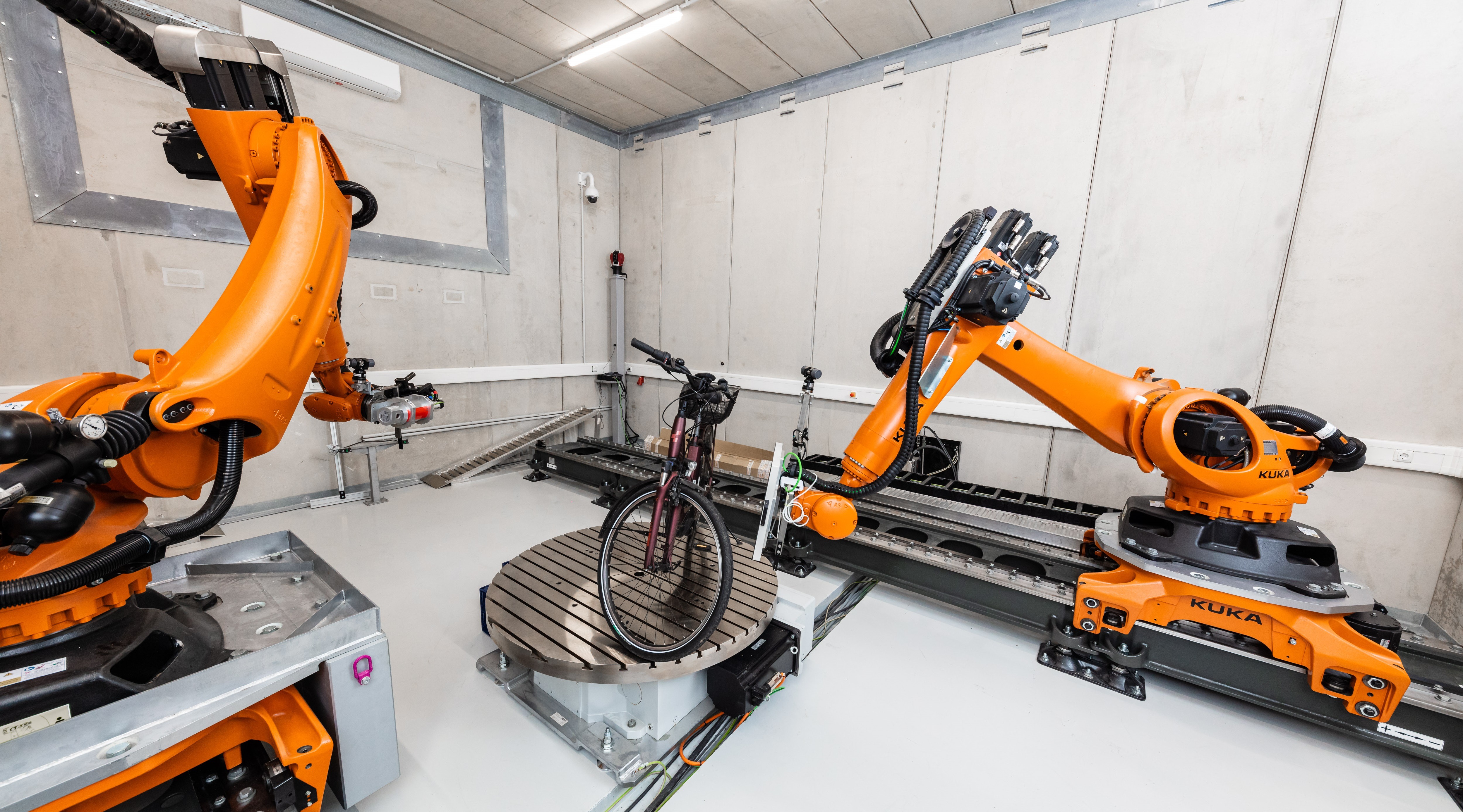 Bild (THD): Das Robo CT, wie es ein Fahrrad überprüft.