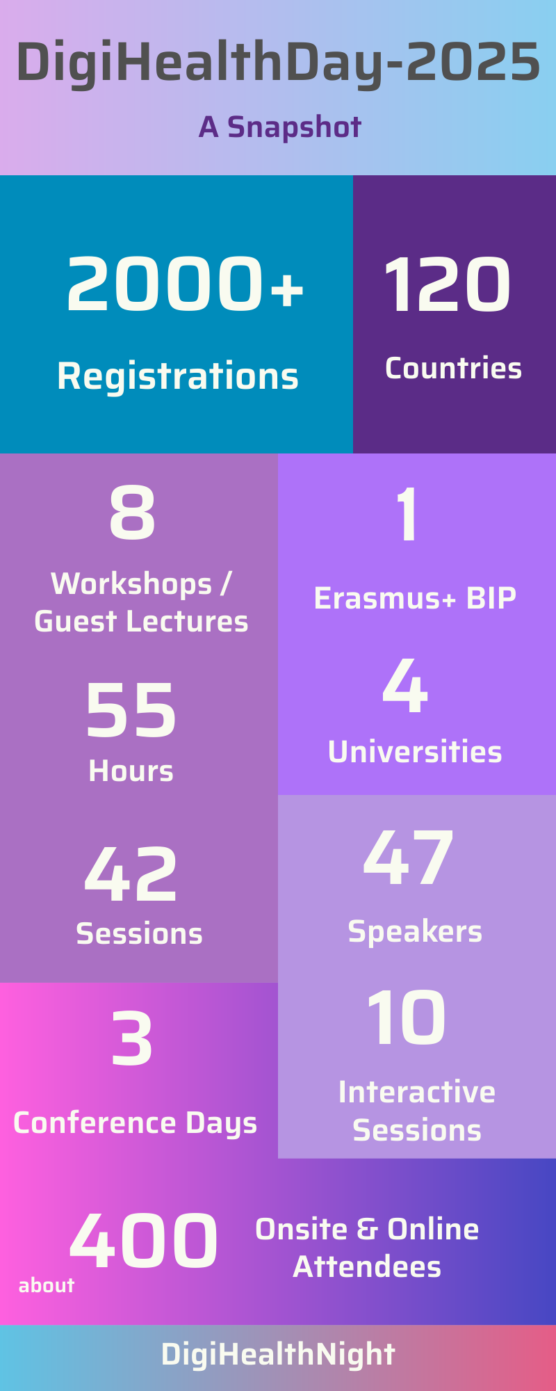 DigiHealthDay 2025 is an International Congress with the theme "Global Digital Health – Today, Tomorrow, and Beyond". We invite interesting abstracts pertaining to the field of digital health and its role in the context of 'Global Health'. You are welcome to submit scientific articles as abstracts or papers.