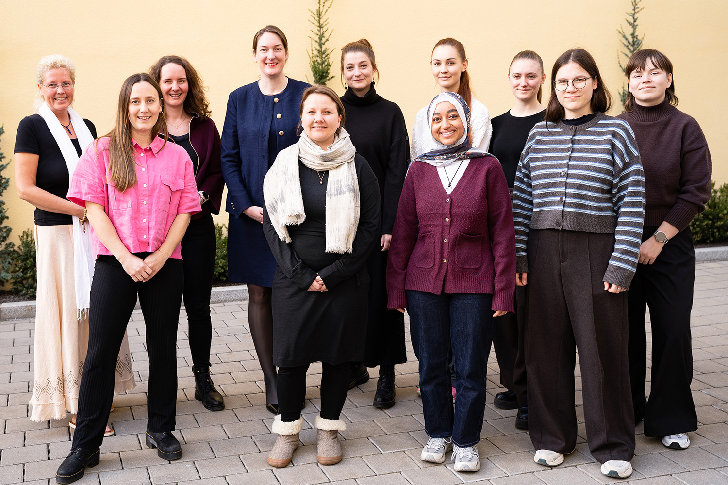 Rosina Amann arbeitet mit „Wildgeschwister” an einer digitalen Plattform zur modernen Jagdausbildung. Maryem Abdellah und Kseniia Vinogradova entwickeln die KI-gestützte App „Vealth” für unkomplizierte Zahnuntersuchungen und Altersbestimmung bei Pferden. Hanna Döbl erfindet mit „ZOEMIRA”, einer Slow-Media-Plattform für interaktive Lichtgeschichten, eine neue Form digitaler Erzählkultur. Valentina Kress macht mit der inklusiven Swimwear Brand „Trudy“ die individuelle Bikini-Gestaltung möglich. Miriam Kupper berät Banken zum Aufbau KI-gestützter Kredit- und Bonitätsprüfungen, um Entscheidungsprozesse schneller, transparenter und zukunftssicherer zu machen. Angelina Mazur Sotskaya arbeitet an einer Software zur Unterstützung bei der Anlagenzertifizierung nach VDE-AR-N 4110. Magdalena Wasner entwickelt eine Trainingsplattform für gezieltes Athletiktraining im Kampfsport. Kristina Lallinger möchte mit schamanischem Coaching die mentale Gesundheit stärken.