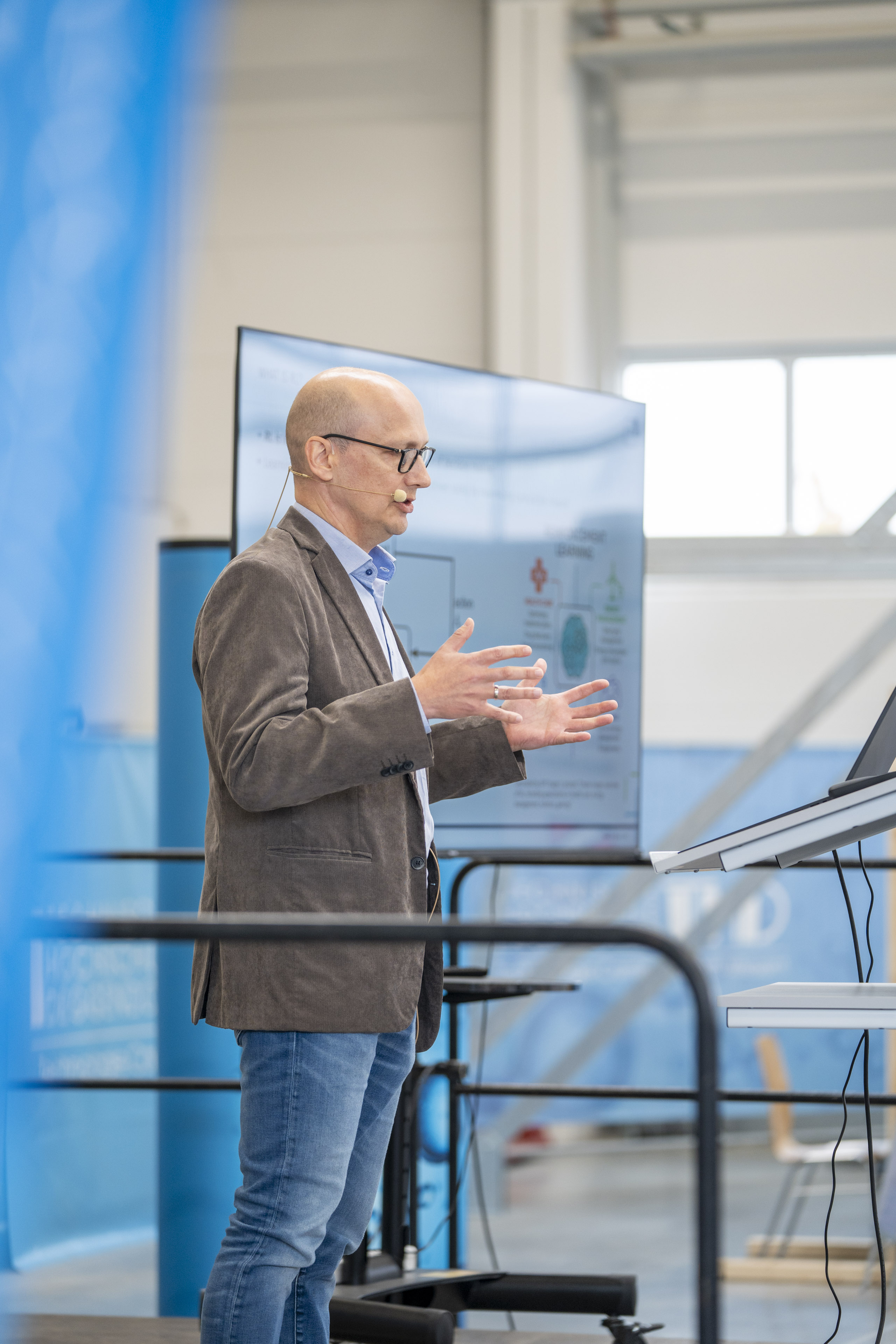Am Nachmittag stand die Führung durch den Technologie Campus mit Laborbesichtigung im Mittelpunkt, bevor Prof. Dr.-Ing. Bernd Kuhn (TC Wörth-Wiesent) die zukünftige Verfügbarkeit von grünem Wasserstoff beleuchtete.
