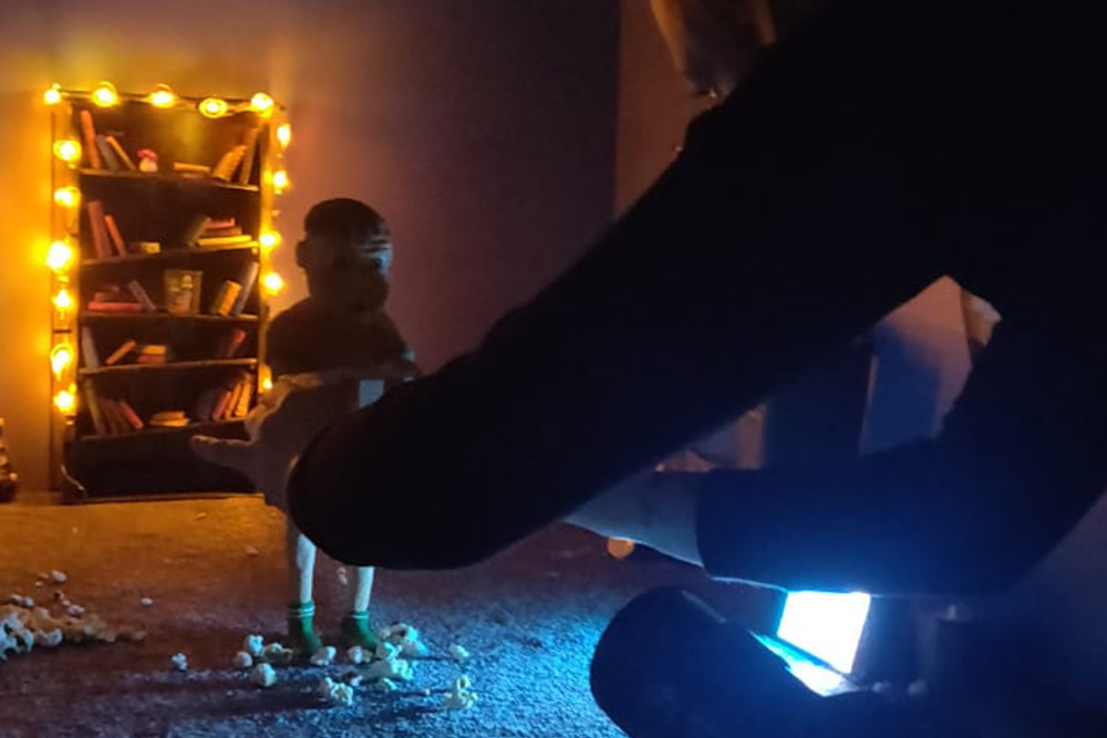 "Wir hatten sehr viel Spaß beim Dreh - wenn jeder an kleinen Teilen bastelt und man sich nie ganz sicher ist, ob es am Ende zusammenpasst, kann das sehr nervenaufreibend sein. Umso schöner, wenn man die erste Szene geschafft hat, sich die Bilder ansieht und das Team einstimmig sagt "Wow, das könnte echt was werden, worauf wir stolz sein können.". Gerade auch während der Zeit der Ausgangsbeschränkungen war es sehr schön, mal wieder mit anderen Student:innen zusammenzukommen, um sich auszutauschen und ein kleines bisschen Normalität zu erleben. Unser Tipp für zukünftige Teams: Nehmt lieber zu viel Material und Werkzeug mit, als zu wenig. Ihr werdet es brauchen. Kleber und Klebeband, so viel ihr kriegen könnt. Und Batterien - SO viele Batterien..."